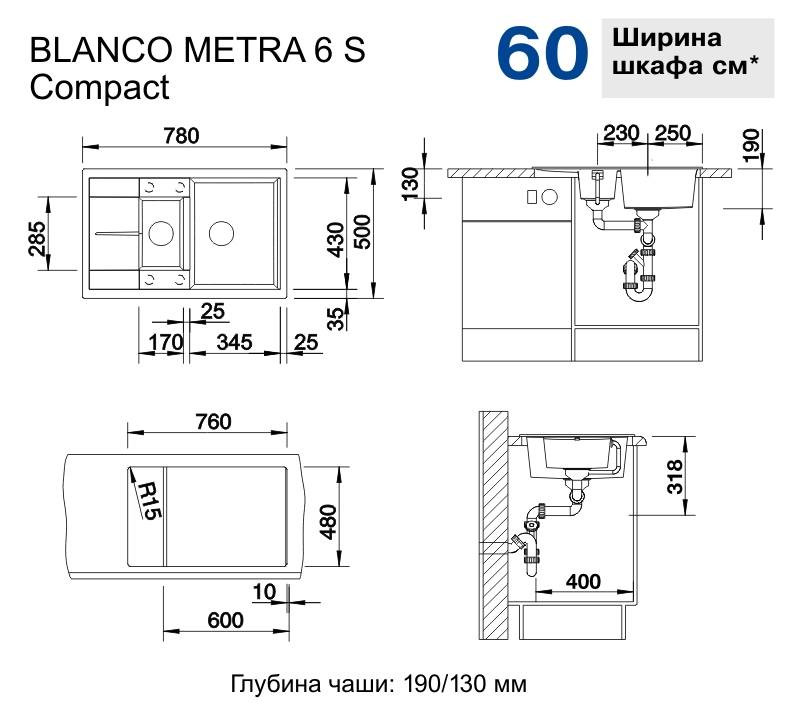 Кухонная мойка Blanco Metra 6 S Compact вулкан серый 527297
