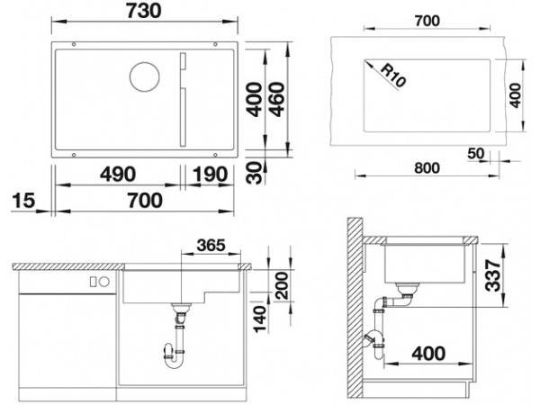 Габариты мойки: 730 x 460 мм