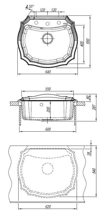 Мойка устанавливается задним бортом вплотную к кухонному фартуку/стене.