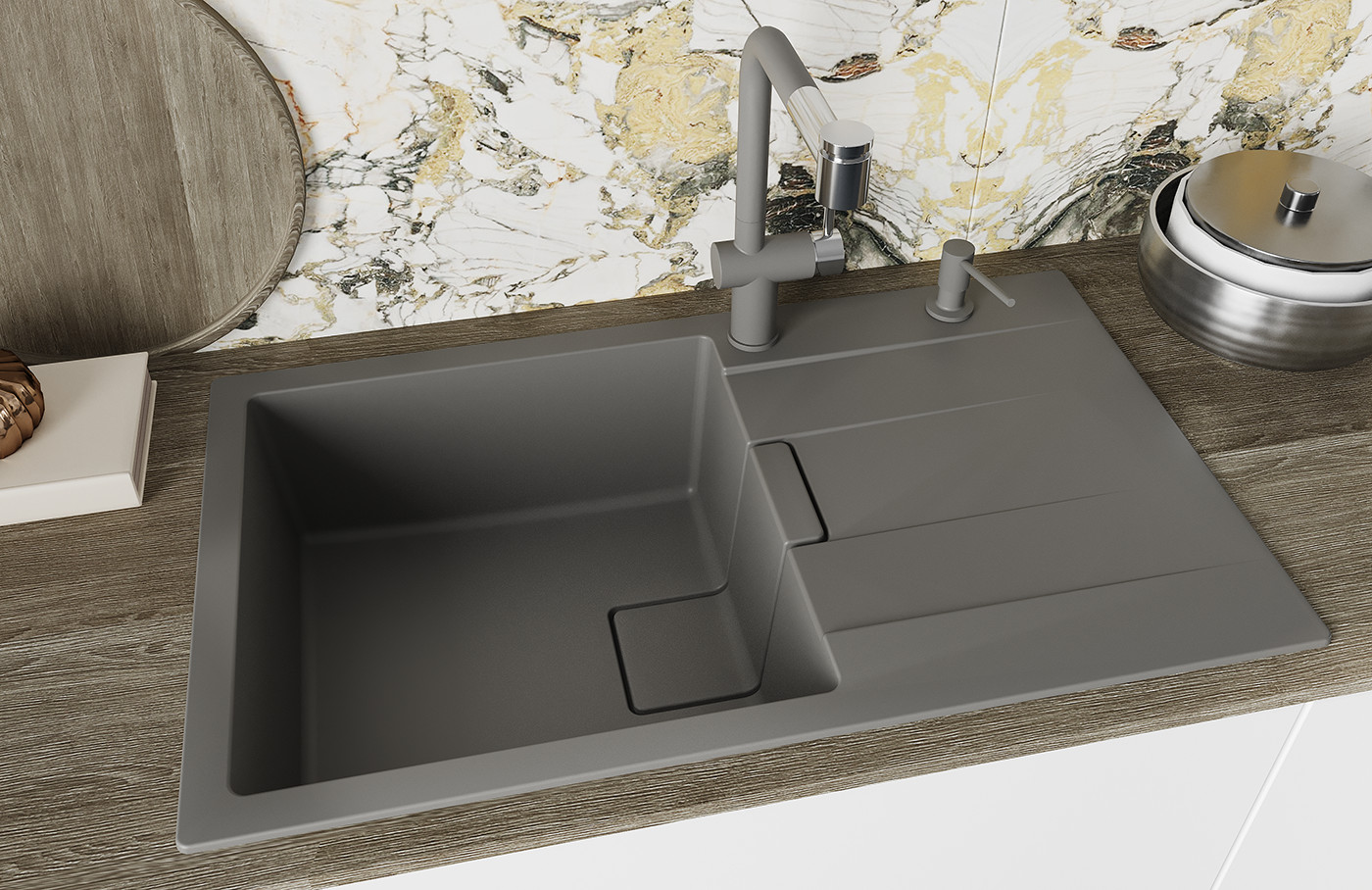 Мойки производятся в 8 цветах: жасмин, шампань, черный, антрацит, грей, серый шелк, бежевый, песочный.
