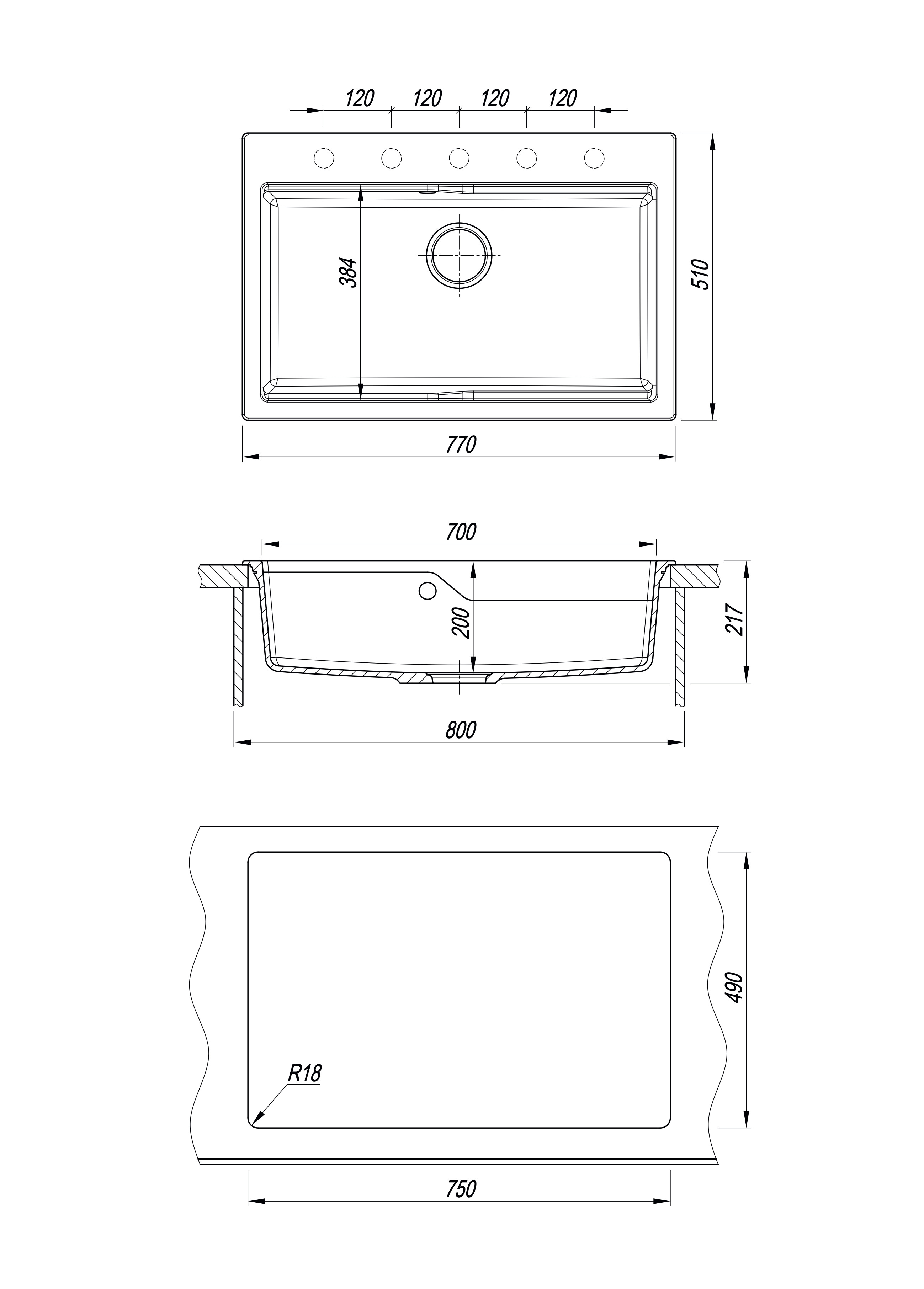 Кухонная мойка Florentina Ромия 770, серый шелк FS