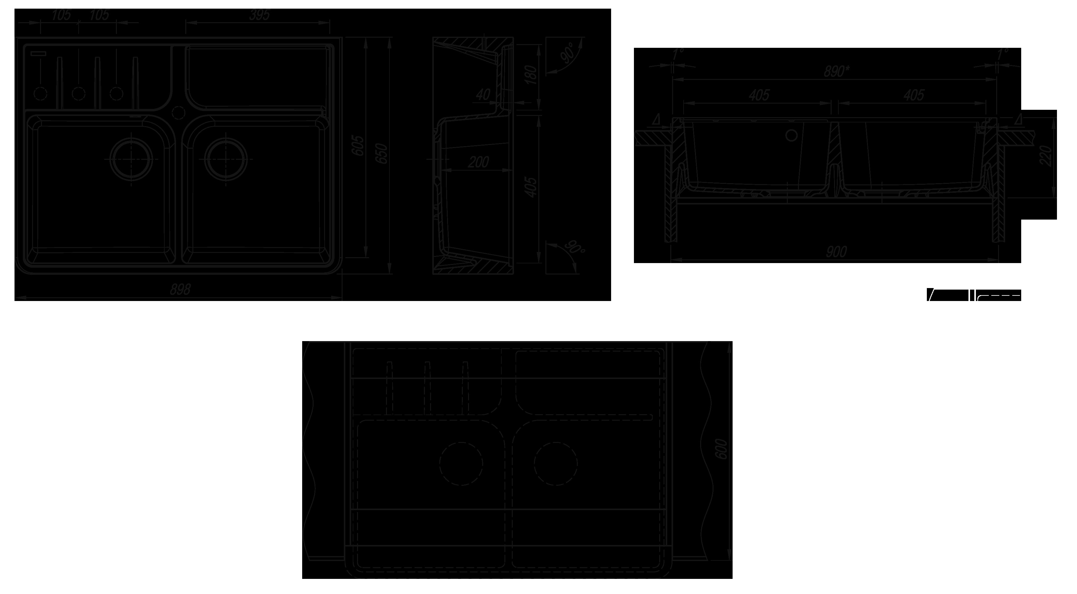 Габаритные размеры (Д х Ш х Г) : 898 х 650 х 220 мм