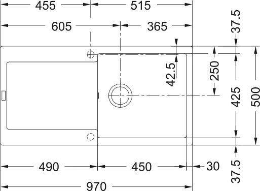 Размер мойки: 970 х 500 мм