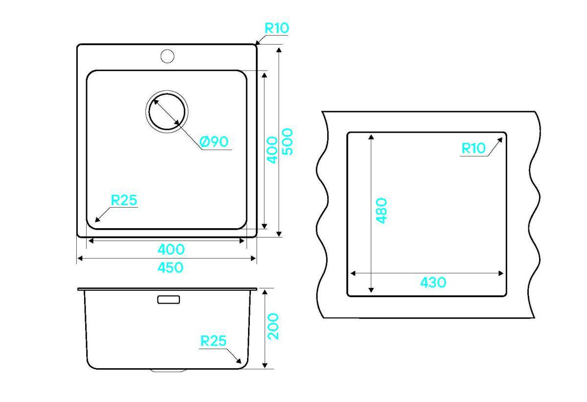 Кухонная мойка KUCHENSTERN HERD 45 AISI 304/R25 нержавеющая сталь 556SS50