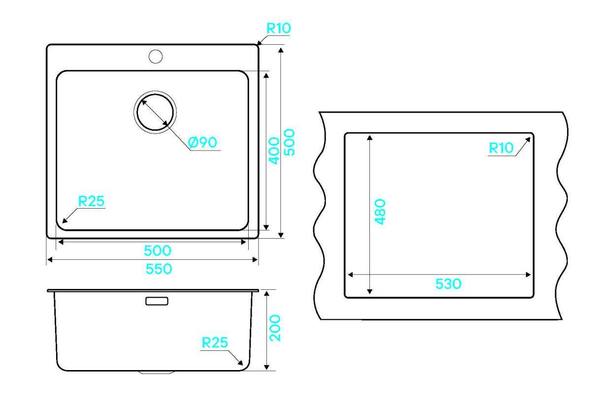 Кухонная мойка KUCHENSTERN HERD 60 AISI 304/R25 нержавеющая сталь 558SS50