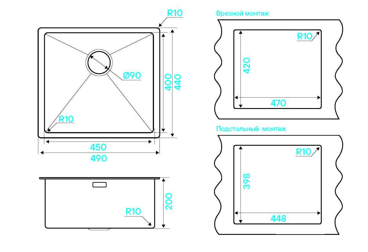 Кухонная мойка KUCHENSTERN KRAFT 50 AISI 304/R10 вороненая сталь 501GM50
