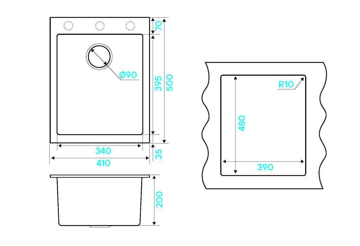 Размер мойки - 410х500х200мм