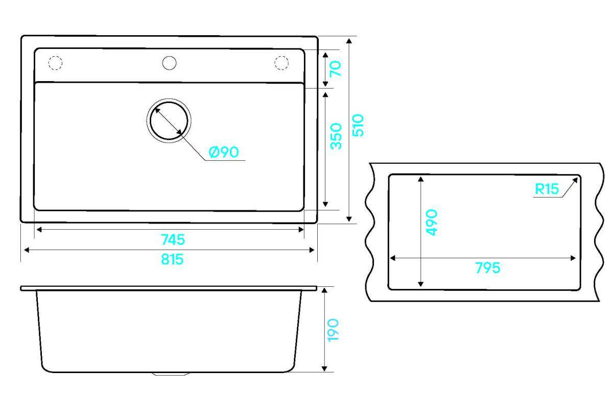 Кухонная мойка KUCHENSTERN TOP 80 Ku-Granit черный 107BL10