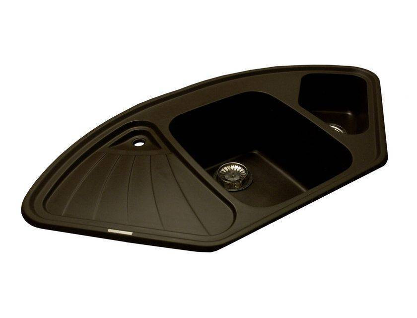 Гранитная мойка A.3 - угловая модель с двумя чашами глубиной 21 и 14 см, удобным крылом и дополнительным сливом 2 см. Возможна установка не только в угловую кухню, но и в прямую столешницу. (Ширина угловой тумбы должна быть не менее 900 х 900 мм! ) Имеется 3 отверстия , предварительно сформированные с обратной стороны. Прочный металлический крепеж, установленный на мойке, обеспечивает надежную её фиксацию в столешнице. Минимальная толщина стенок мойки - 8 мм. Мойка укомплектована сливной арматурой.