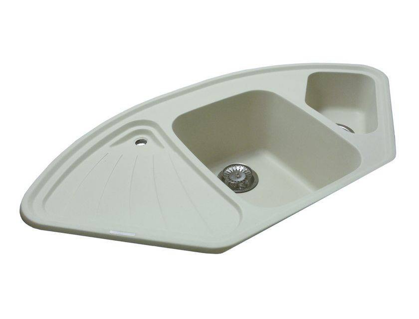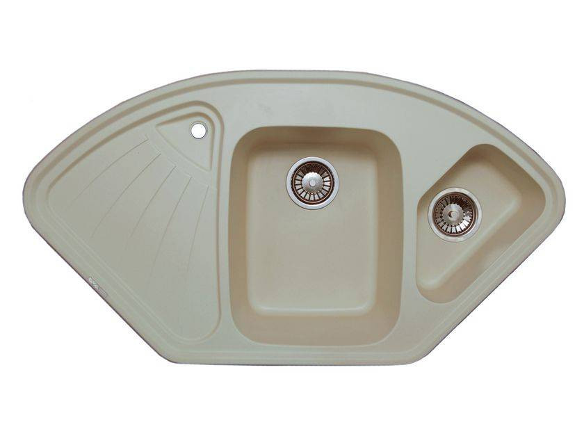 Гранитная мойка A.3 - угловая модель с двумя чашами глубиной 21 и 14 см, удобным крылом и дополнительным сливом 2 см. Возможна установка не только в угловую кухню, но и в прямую столешницу. (Ширина угловой тумбы должна быть не менее 900 х 900 мм! ) Имеется 3 отверстия , предварительно сформированные с обратной стороны. Прочный металлический крепеж, установленный на мойке, обеспечивает надежную её фиксацию в столешнице. Минимальная толщина стенок мойки - 8 мм. Мойка укомплектована сливной арматурой.