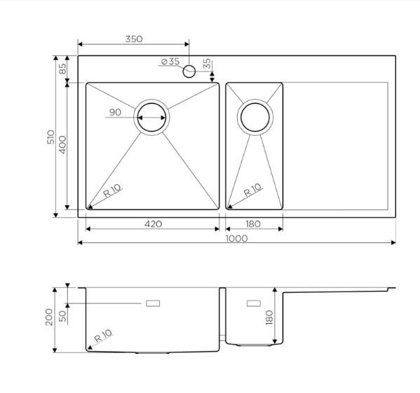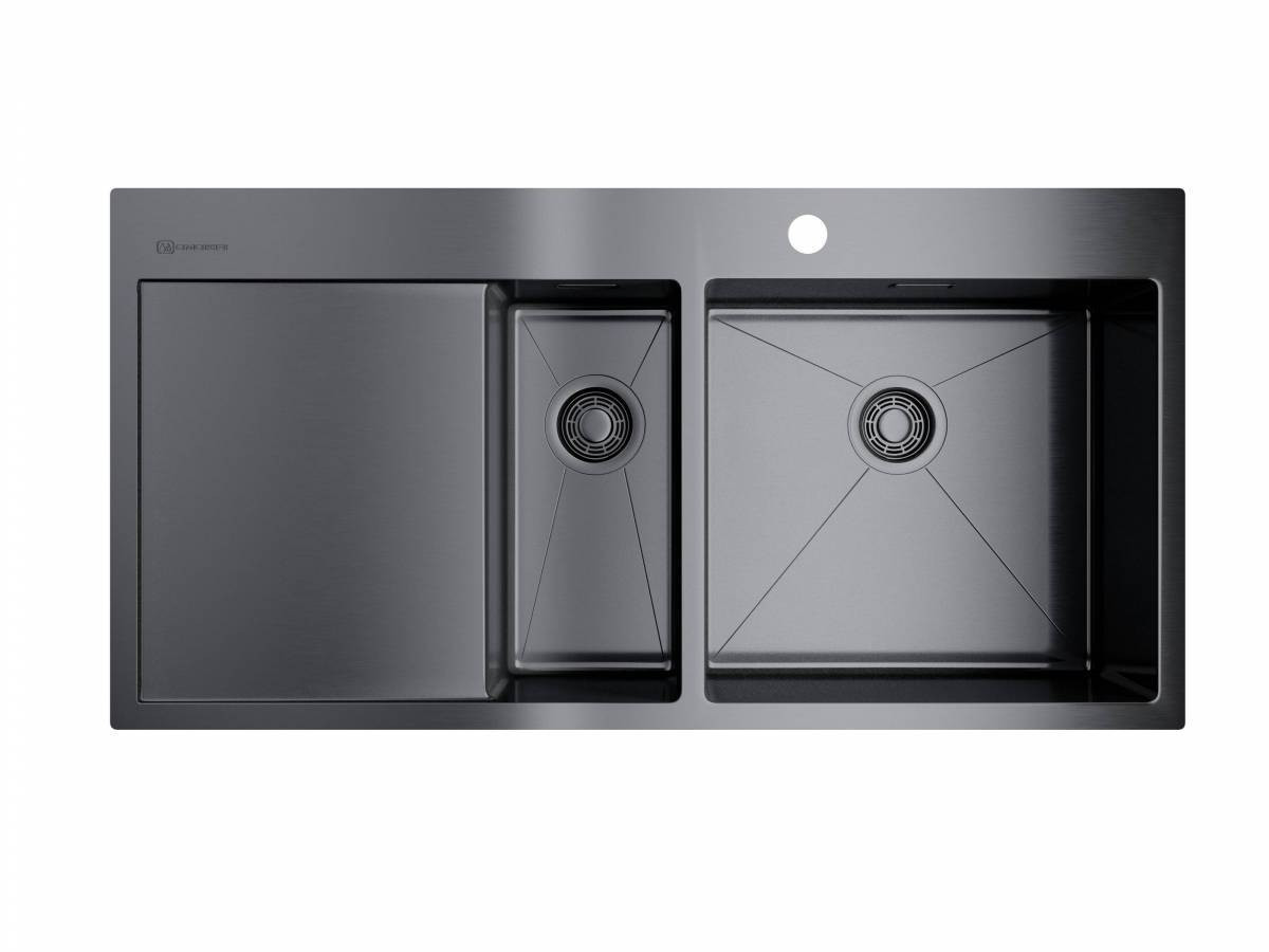 Кухонная мойка OMOIKIRI Akisame 100-2-GM-R вороненая сталь