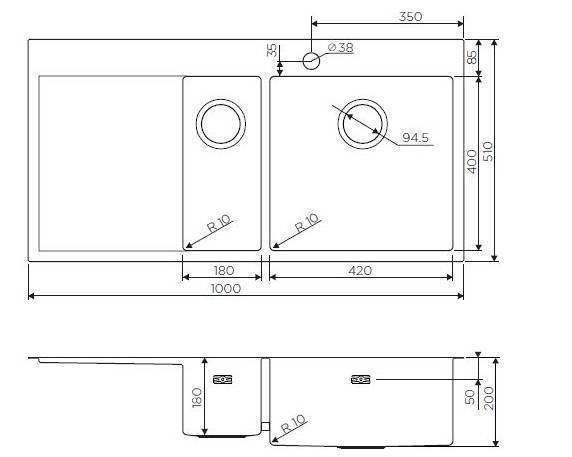Мойка выполнена из японской высококачественной хромоникелевой нержавеющей стали с покрытием PVD.