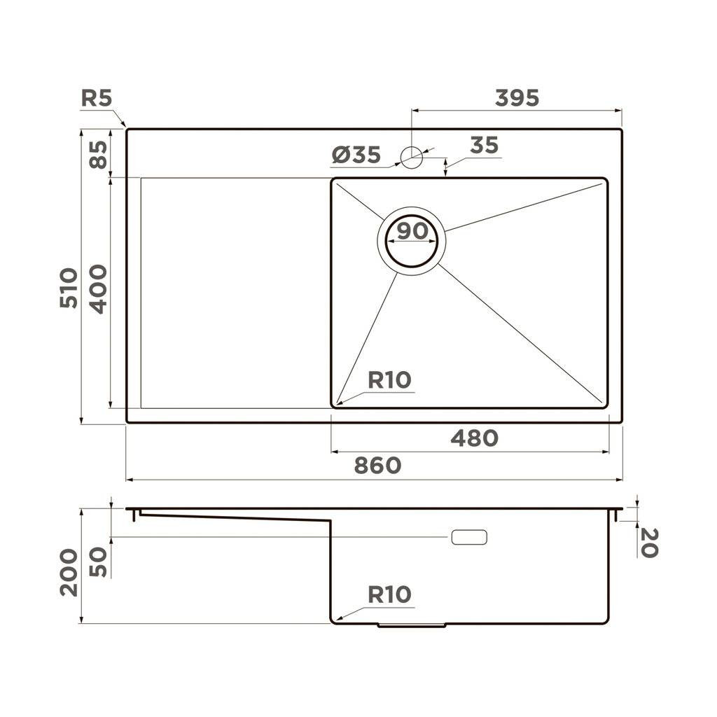 Кухонная мойка Omoikiri Akisame 86-LG-L Side нержавеющая сталь