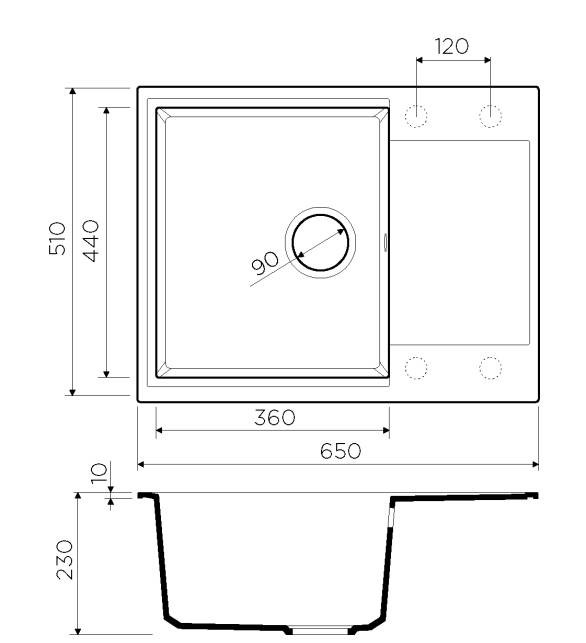 Размер мойки 650 х 510 мм
