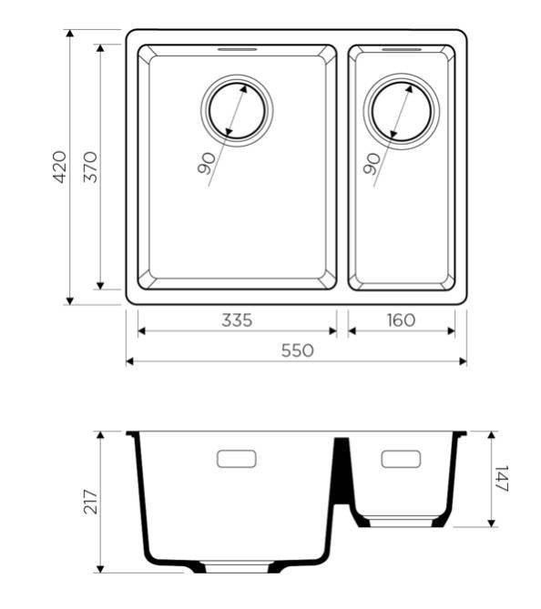 Размер чаши, мм: 370*335 / 370*160