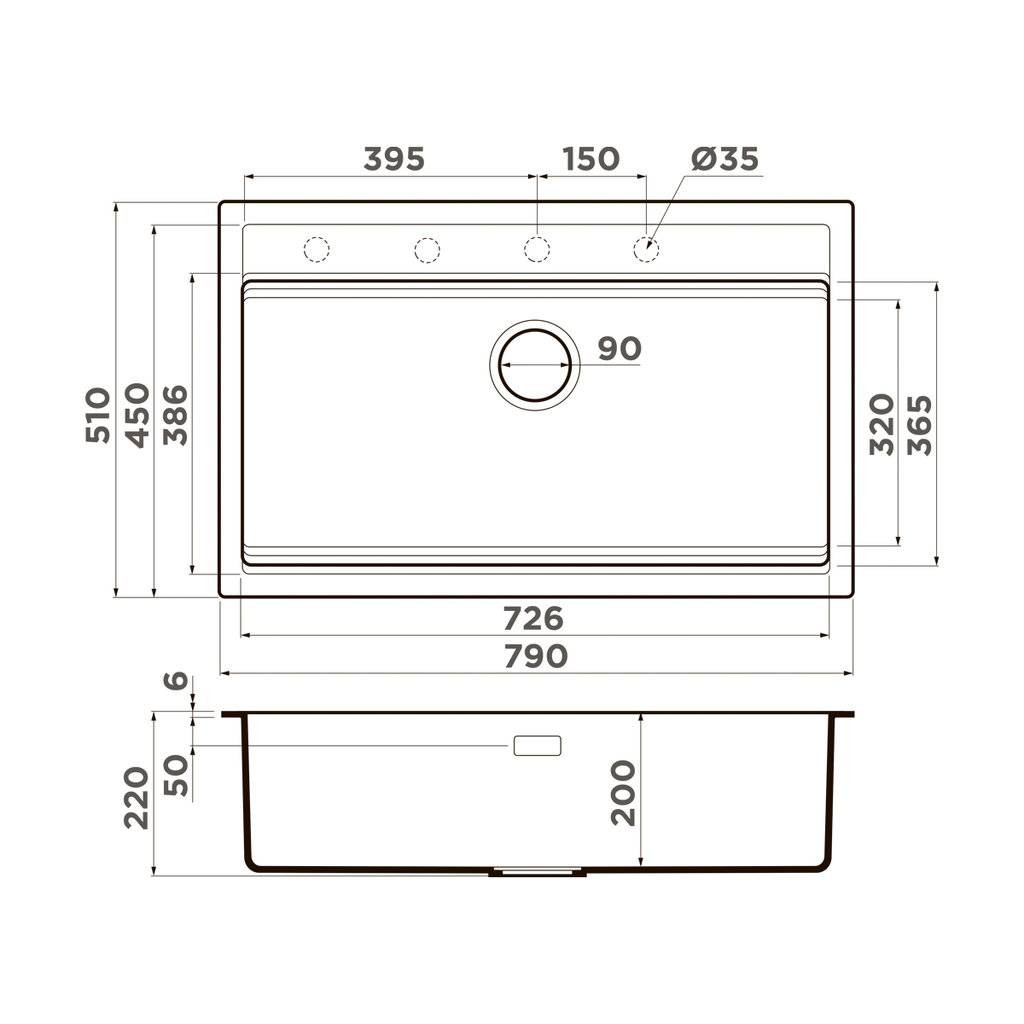 Размер мойки: 790x510