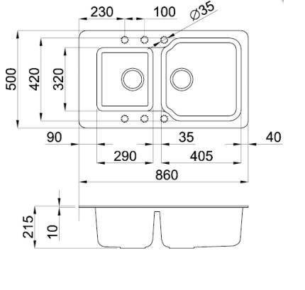 Глубина чаши 215 мм