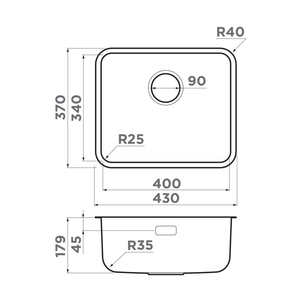 Радиус угла мойки, мм: 40