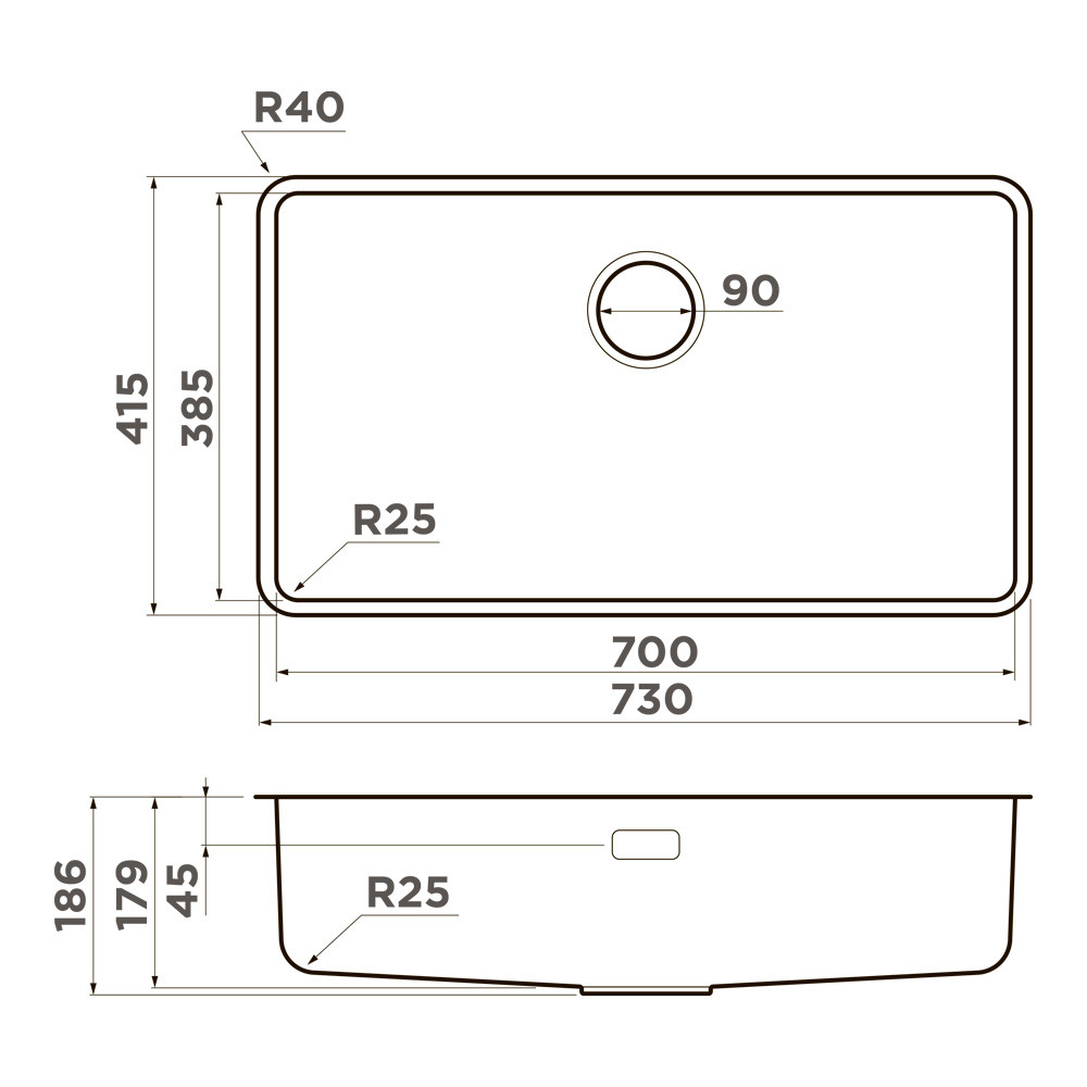 Размеры: ширина 730 мм x длина 415 мм x глубина 179 мм