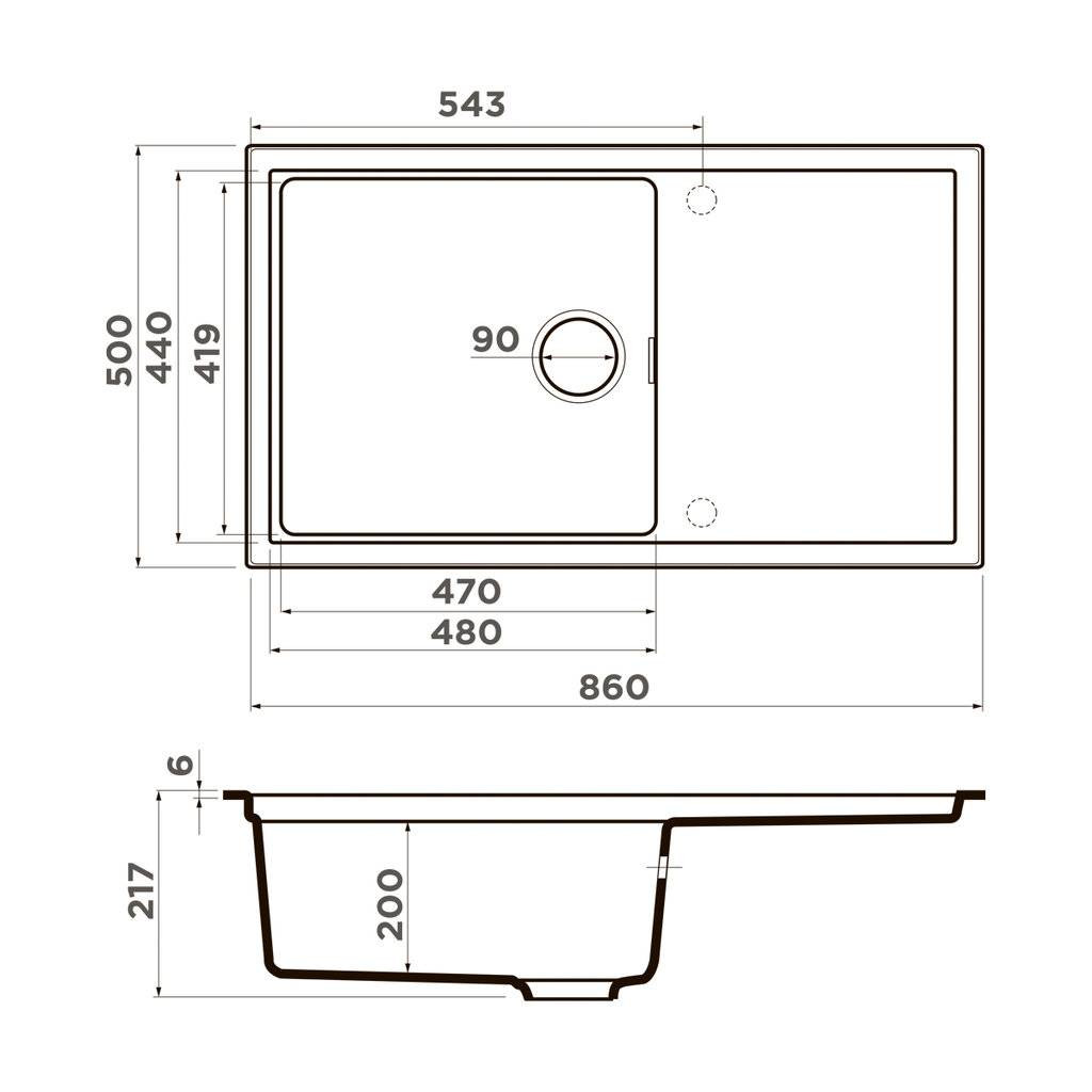 Размер мойки: 860x500