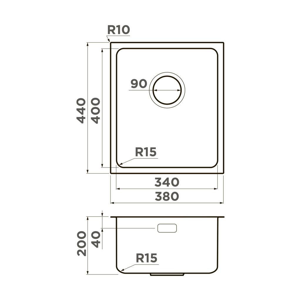 Размер мойки: 380х440