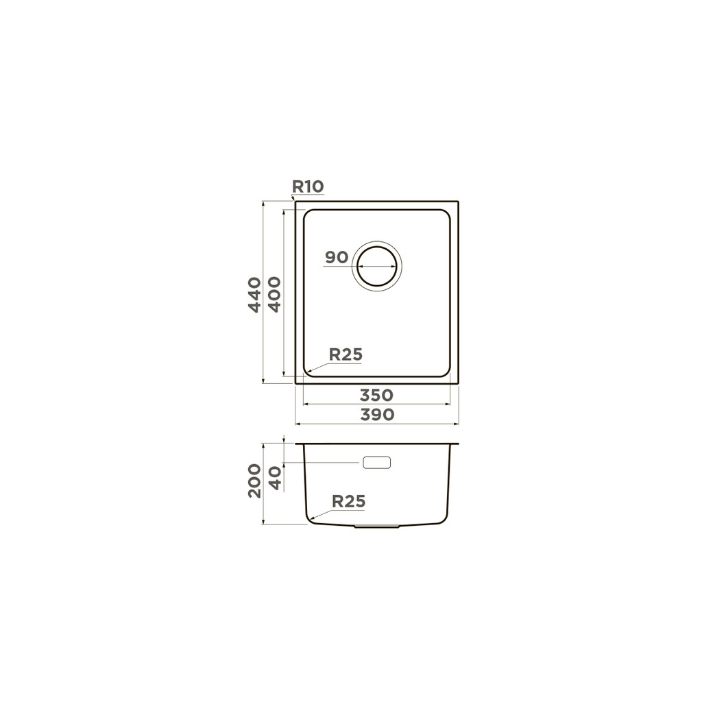 Размер мойки: 390х440