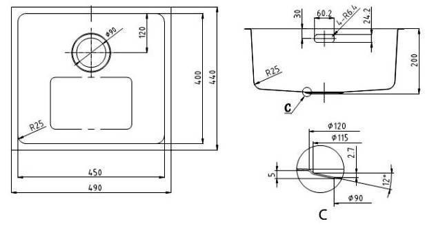 Радиус угла закругления 25 мм.