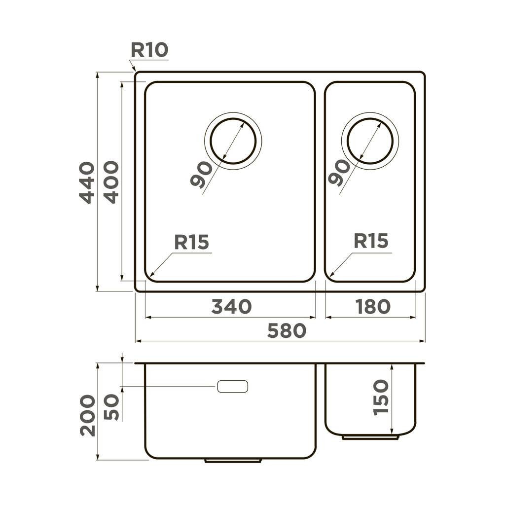 Размер мойки: 580х440