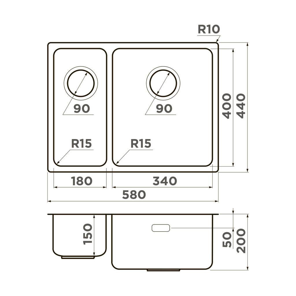Кухонная мойка Omoikiri Tadzava 58-2-U/I-IN-R ULTRA 15 нержавеющая сталь