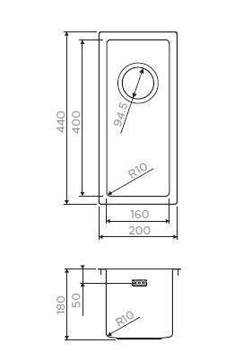 Размер мойки 200x440