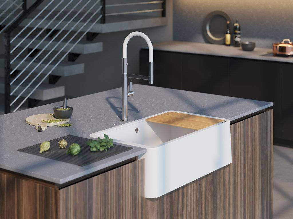 Преимуществом моек с видимой фронтальной стенкой является универсальность их монтажа: они могут быть установлены врезным способом, подстольным или вровень со столешницей.