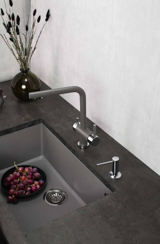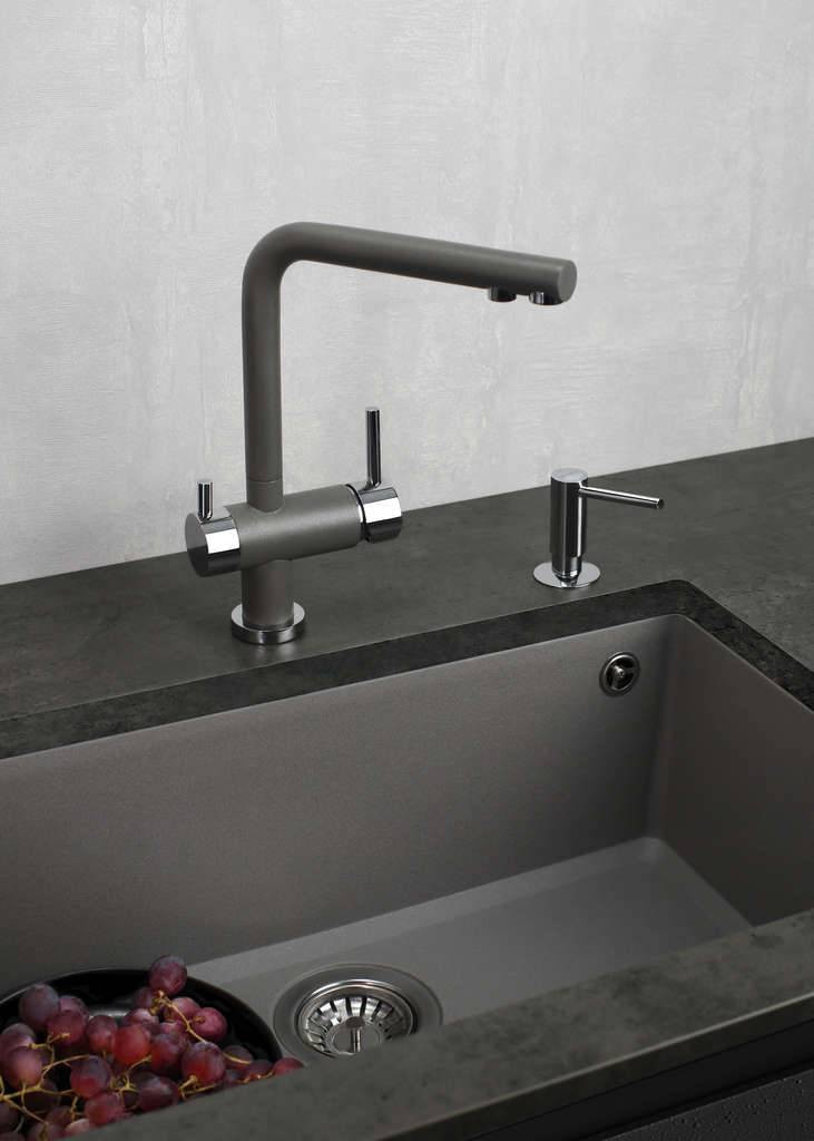TETOGRANIT — это связь гранита с акриловой смолой, которая выявляет лучшие качества гранита: выдерживает высокие температуры и удары. При изготовлении таких моек применяется специальный способ окрашивания частиц гранита: пигмент не только наносится на их поверхность, но и проникает во внутренние структуры камня благодаря запеканию при температуре выше 700 градусов.