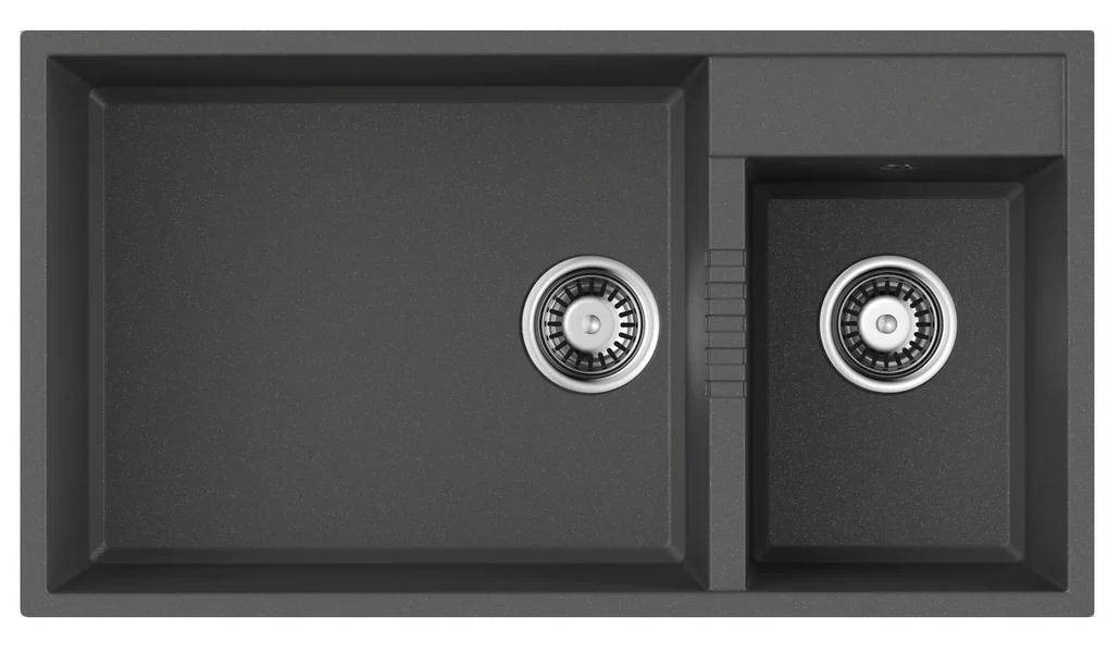 Мойка черного цвета создана из материала «Tetogranit Metal».