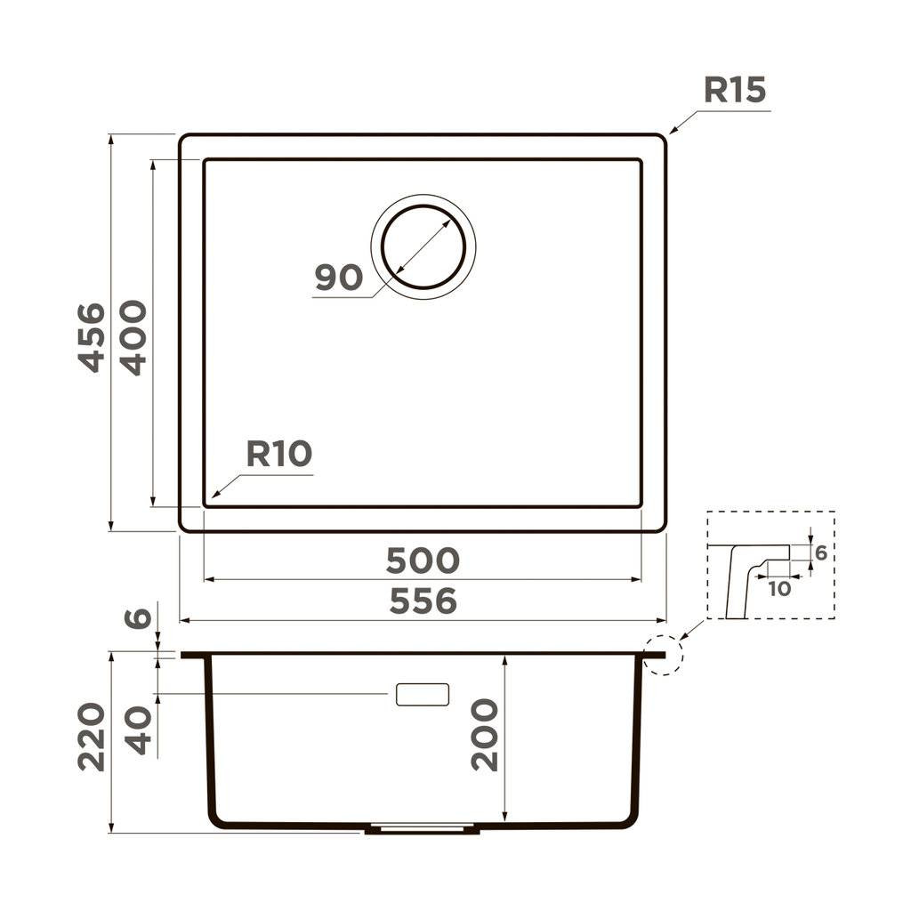 Размер выреза под мойку, мм: 400*500