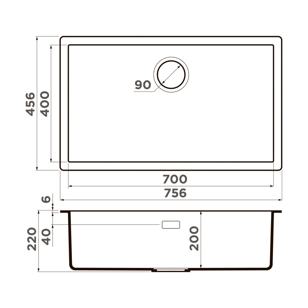 Размер мойки: 756x456