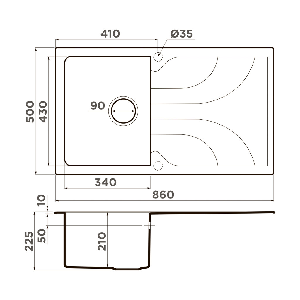 Глубина чаши, мм: 210