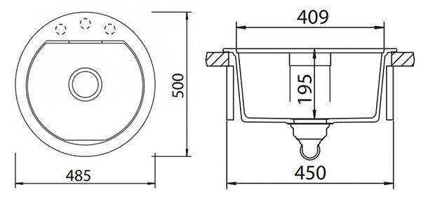 Размер мойки: 485x500