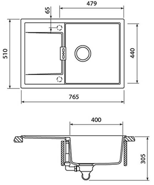 Комплектация: Отводная арматура с переливом и сифоном с возможностью подключения посудомоечной или стиральной машины.