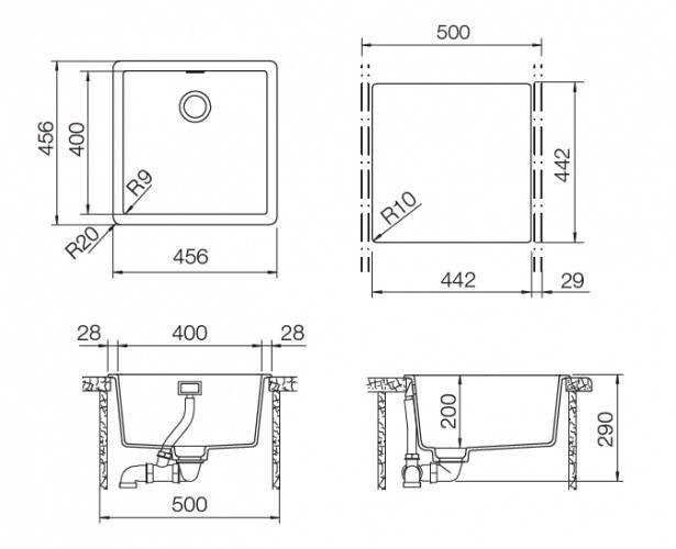 Размер мойки, см 45,6x45,6