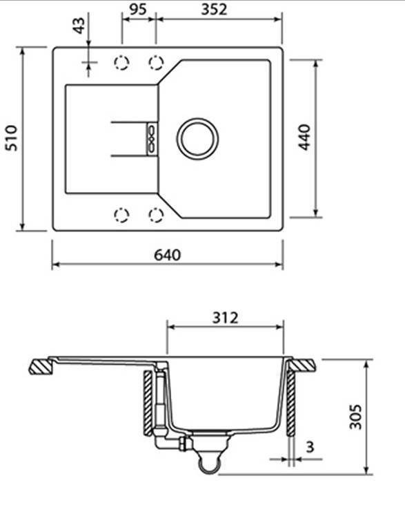 Комплектация: Отводная арматура с переливом и сифоном с возможностью подключения посудомоечной или стиральной машины.