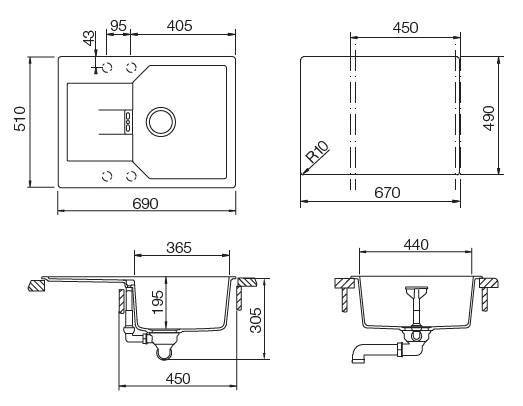Кухонная мойка Schock Manhattan 45 D корз.клапан инка