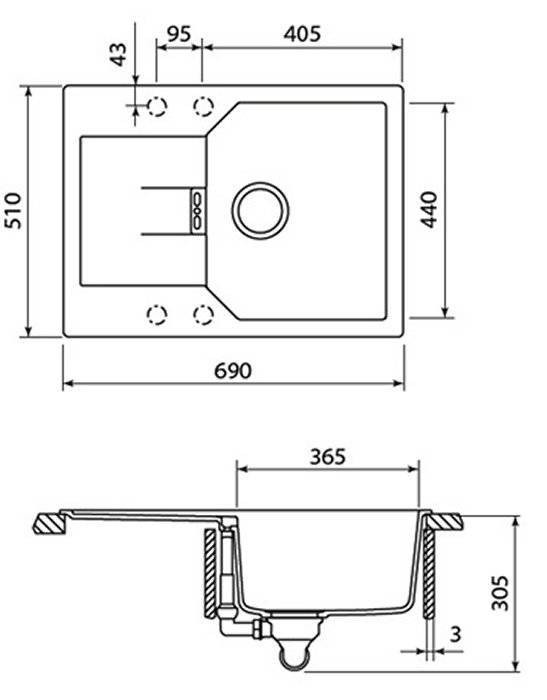 Комплектация: Отводная арматура с переливом и сифоном с возможностью подключения посудомоечной или стиральной машины.