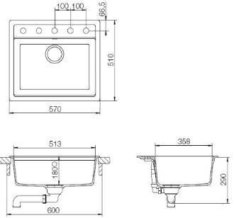 Комплектация: Отводная арматура с переливом и сифоном с возможностью подключения посудомоечной или стиральной машины.