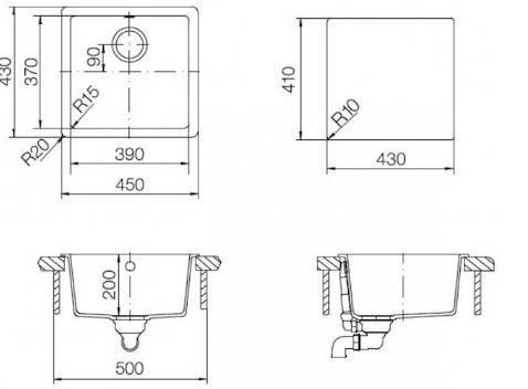 Размер мойки 450х430 мм