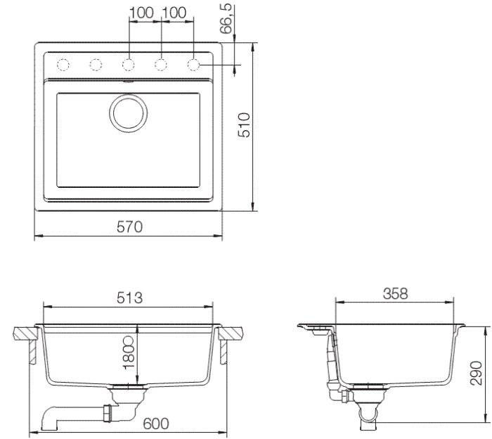 Комплектация: Отводная арматура с переливом и сифоном с возможностью подключения посудомоечной или стиральной машины.