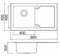 .врезная / над столешницей / 1 / 860х500 мм / 400х400х205 мм / черный