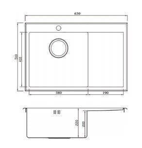 Сифон и крепежи в комплекте.врезная / 1 / 630х510 мм / 380х410х200 мм