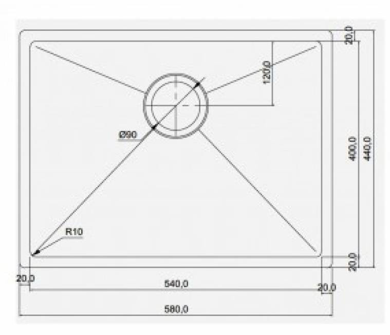 Удобный и практичный радиус внутренних углов чаши: 10 мм. (R10).