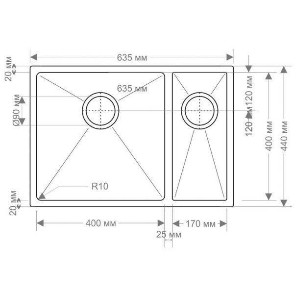 Глубина чаши 200 мм