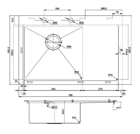 врезная / 1 / 780х500 мм / 400х400х200 мм / 760х480 мм / нержавеющая сталь